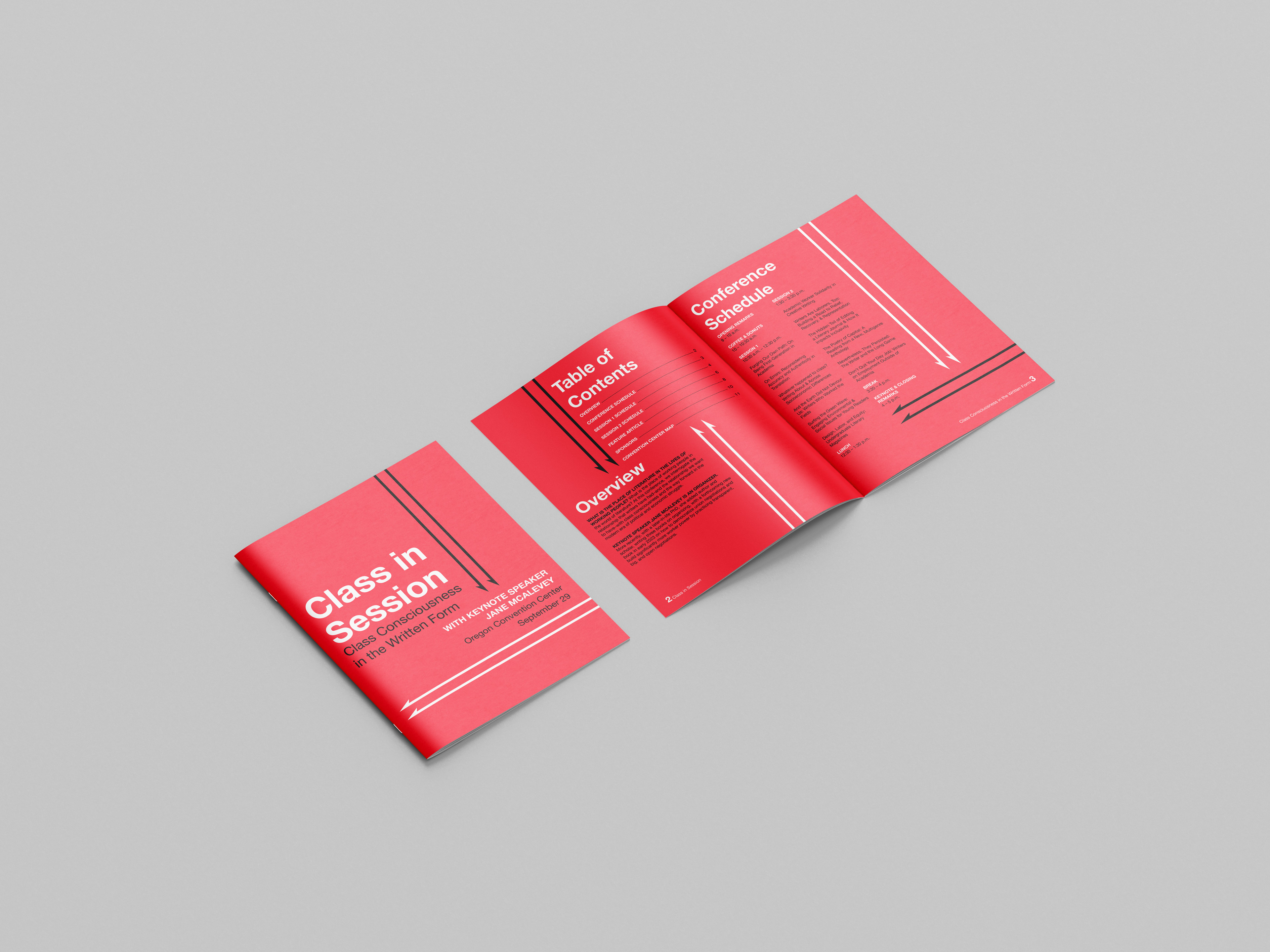 This project includes several print and digital products for a writers’ conference. It includes a logo and visual style system, multiple posters, wayfinding systems, digital graphics, and a printed booklet for the event.