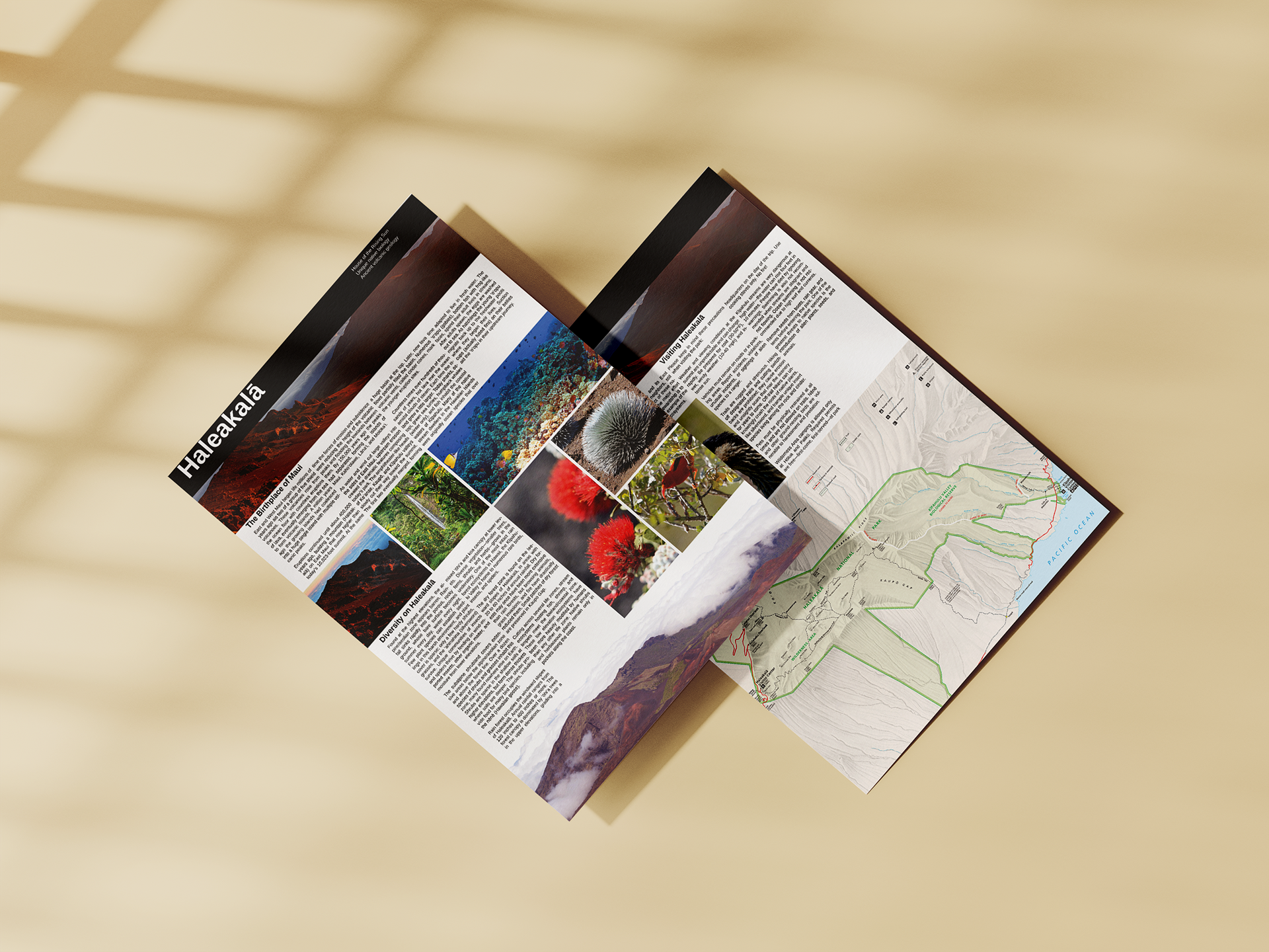 For this project, I created a collectible poster and corresponding brochure for Haleakala National Park, located on my home island of Maui. The poster required careful use of Adobe Illustrator image tracing tools and typesetting. The brochure was an exercise in type and image setting within a grid structure.